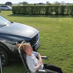 Nach dem Check-in ging es zum Platz U31, gleich beim Sanitärgebäude. Eine kleine Kurvenfahrt, ein niedriges Hausdach – nichts, was uns aufhielt. Und siehe da: ein Platz nur für uns allein, auf einer riesigen Wiese. Der Wohnwagen stand perfekt, alles war schnell eingerichtet. Das Sanitärgebäude? Ein wenig in die Jahre gekommen, aber sauber und völlig okay.