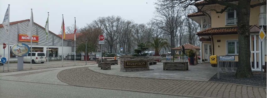 Um 17:30 Uhr waren wir dann am Campingpark Kühlungsborn angekommen. Das Gespann wurde auf die Anreisespur gestellt und es ging zur Anmeldung. Nach einer kurzen Einweisung wurden wir von einem Mitarbeiter vom Platz zu unserem Stellplatz gebracht und er erklärte uns noch, wo Strom, Wasser und das Waschhaus sind. Zu dieser Jahreszeit haben noch nicht alle Waschhäuser offen.