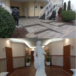 Es ging rückwärts zu unserem Stellplatz und Steffi sagte: „Ach, schau an, wer da ist – die Franks, Diana und Olli“, die uns auch gesehen hatten. Wir wussten, dass sie hier auf dem Platz sind, aber dass sie wieder nicht weit weg von uns standen, wussten wir nicht. Wir begrüßten uns alle herzlich und alle halfen uns, Pogomuckl auf den Platz zu bekommen, da die Batterie vom Mover nicht geladen war.