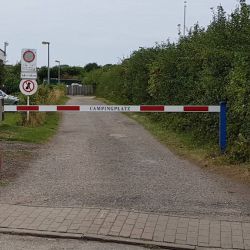 Sie zeigte uns den Platz aus ihrer Perspektive: Das Sanitärgebäude war sauber und gepflegt. Zugang zu den WCs nur mit Schlüssel, Duschen kosten 50 Cent für vier Minuten. Im hinteren Bereich gibt es einen Spielplatz und einen Bolzplatz – ideal für Familien. Direkt hinter der Schranke befinden sich die Chemietoiletten-Entleerung sowie die Ver- und Entsorgungsstation für Wohnmobile. Strom ist im Stellplatzpreis enthalten. Das Restaurant liegt direkt am Strand, der allerdings durch einen Sturm etwas in Mitleidenschaft gezogen wurde. Nach dem Rundgang ging’s zurück zum Wohnwagen, wo wir den Samstag ruhig ausklingen ließen.